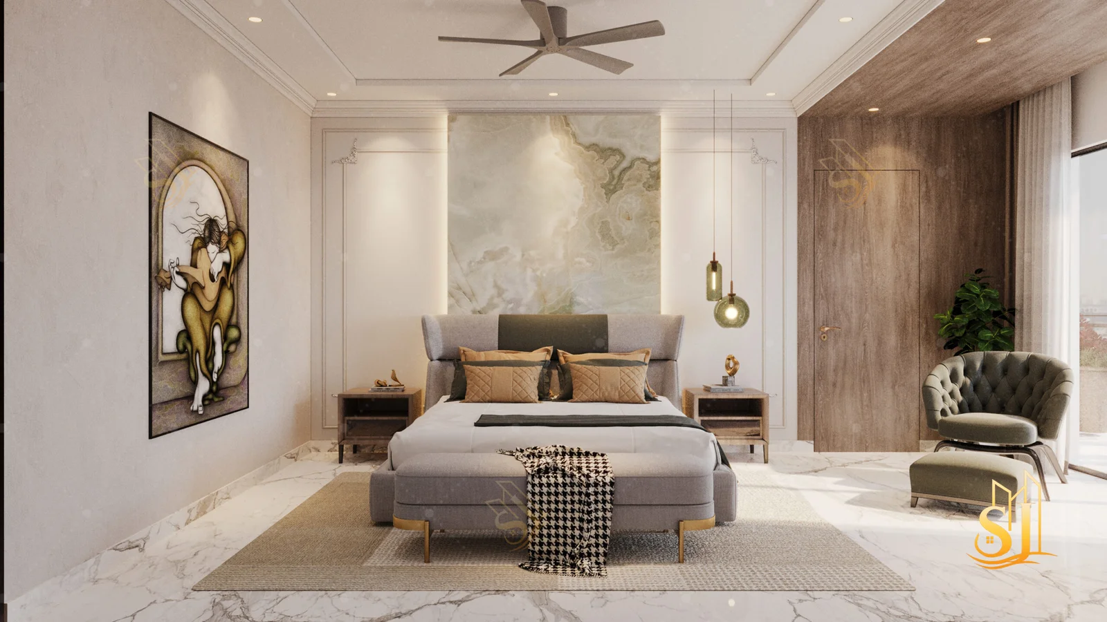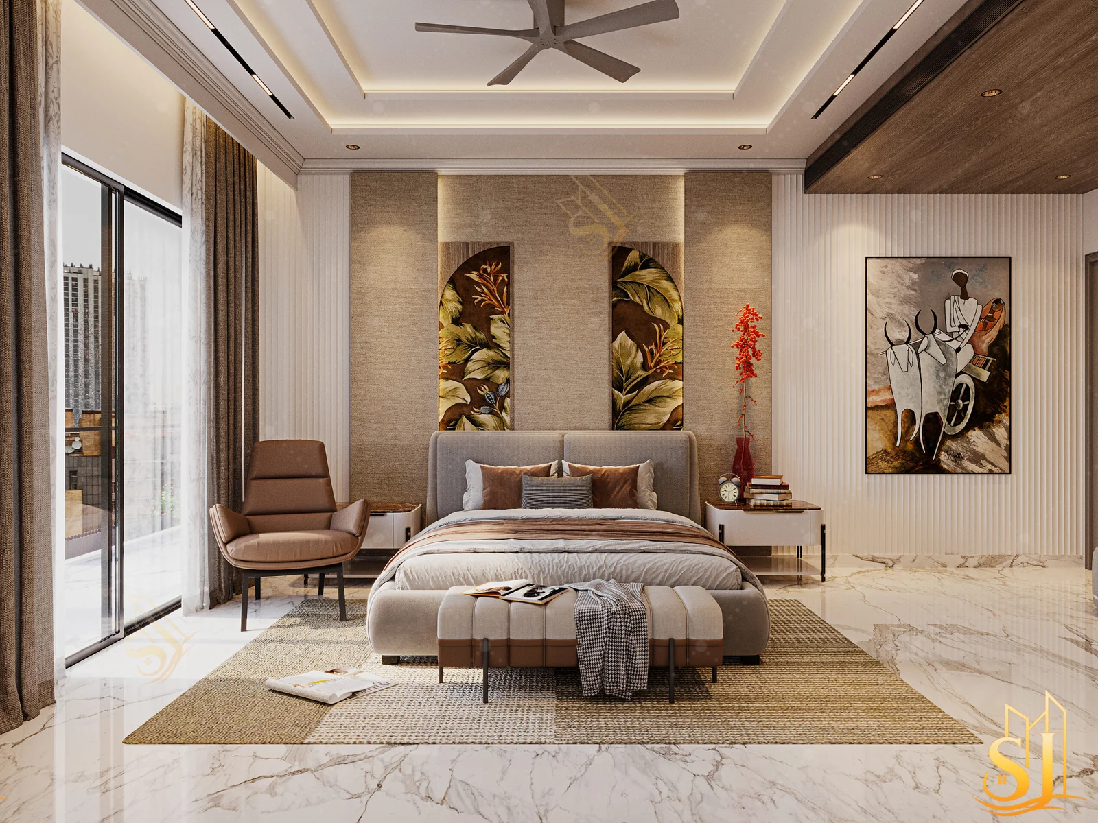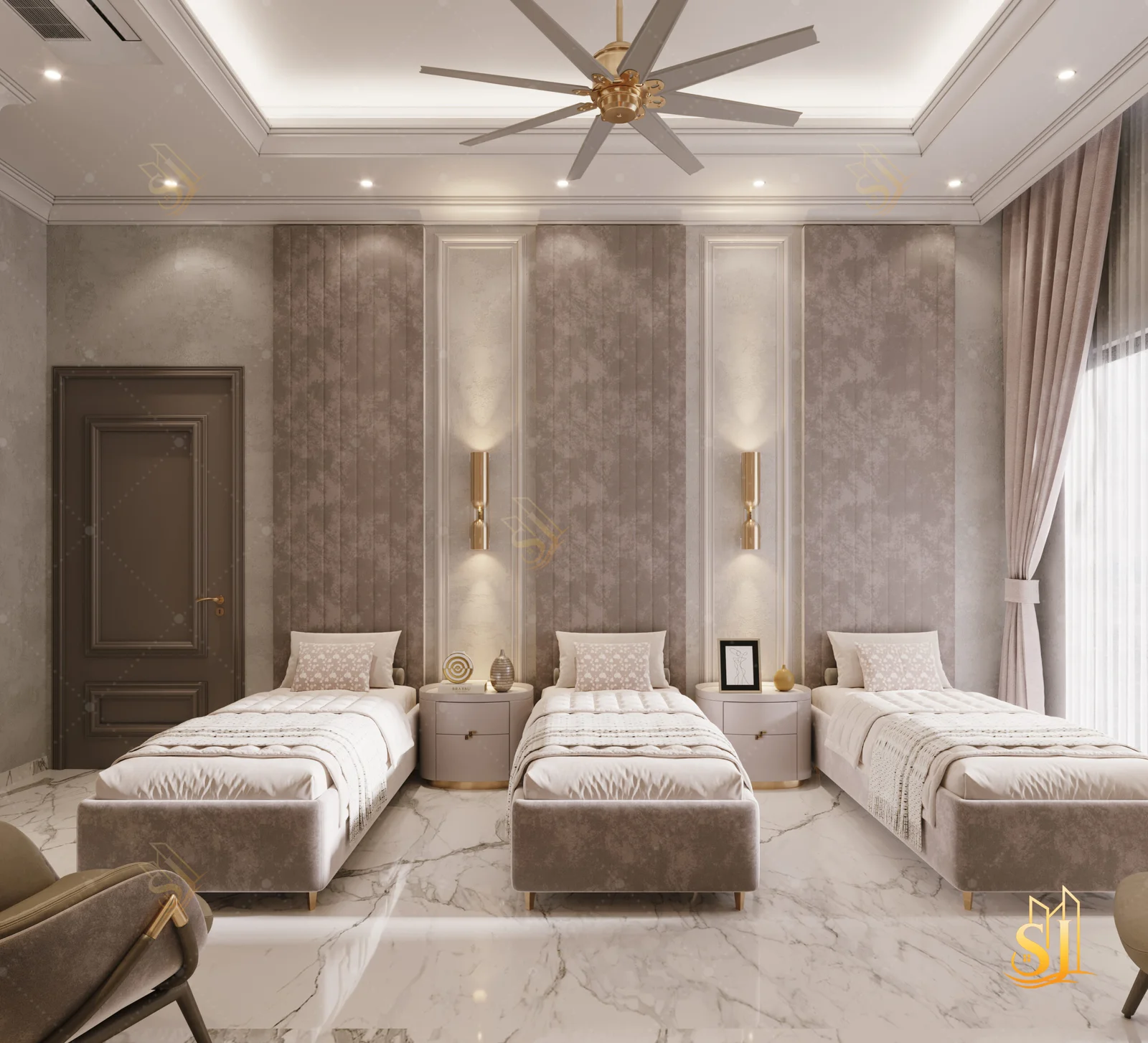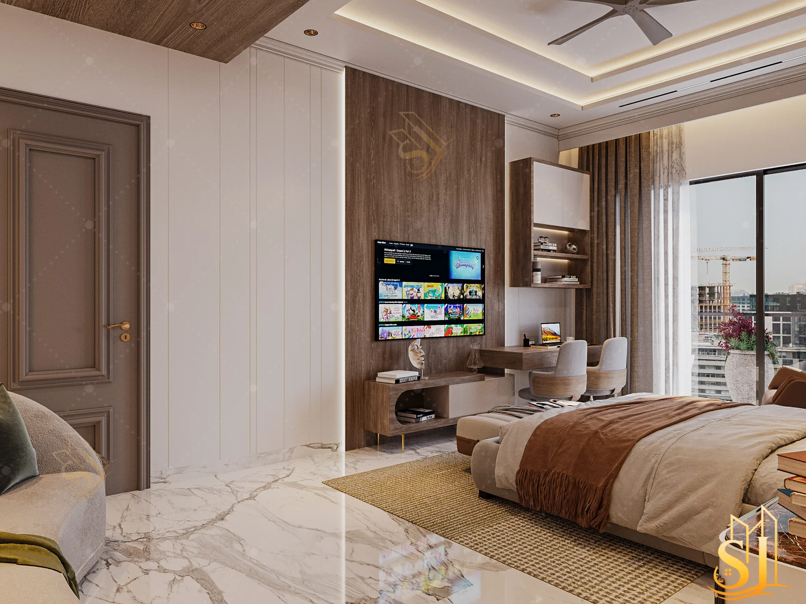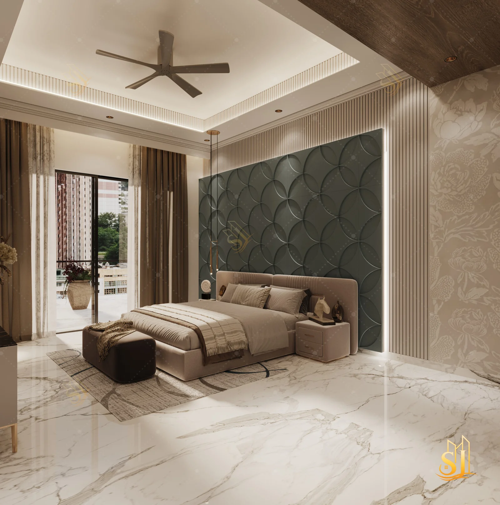 A luxurious and elegant residence designed to balance refined aesthetics with everyday comfort. Plush seating, intricate ceiling details, and a warm neutral palette come together to create a timeless living environment tailored for modern urban living.