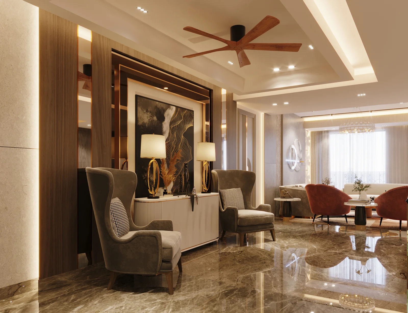 A refined residential project in Sector 63, Gurugram, designed to balance modern luxury with timeless elegance. The spaces are thoughtfully curated to offer comfort, sophistication, and seamless functionality, reflecting SJ Design Consultants’ signature approach to bespoke living.