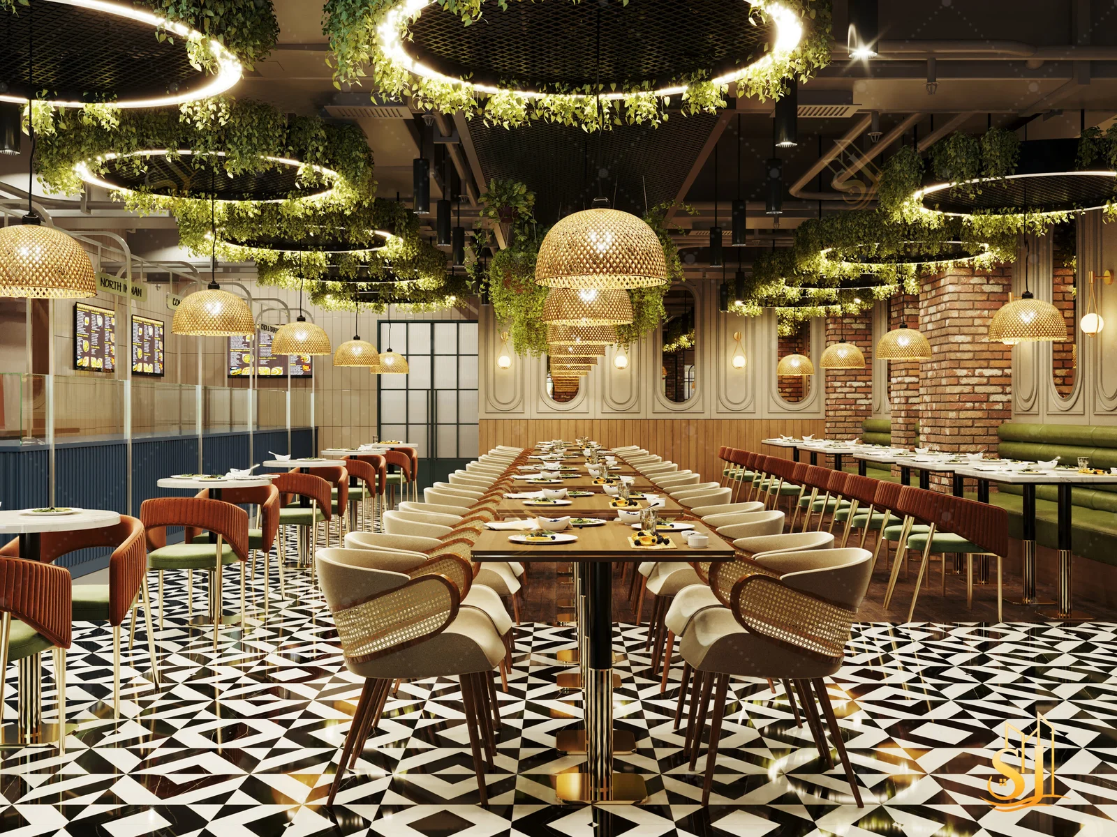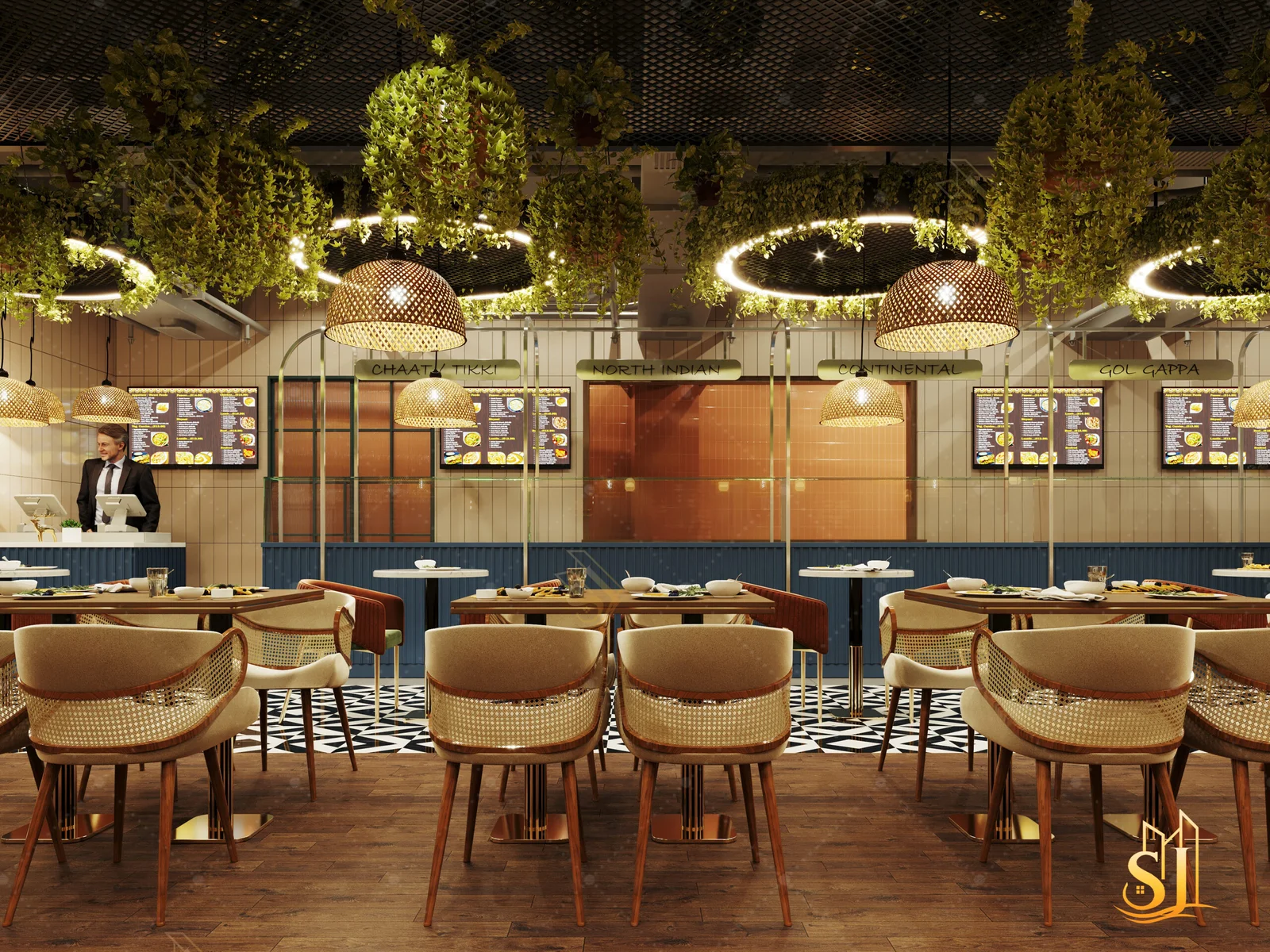 Additionally, managing acoustics, circulation flow, and lighting across a high-footfall commercial environment required careful spatial planning. The design also needed to stand out visually while remaining practical for daily restaurant operations and maintenance.