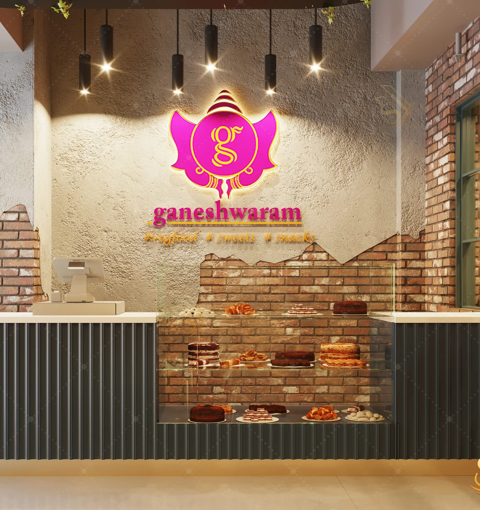 Ganeshwaram Hotel & Restaurant was envisioned as a destination that celebrates food, culture, and togetherness. The design focuses on creating a welcoming yet upscale environment where guests feel comfortable spending extended time. whether for dining, family gatherings, or large celebrations.